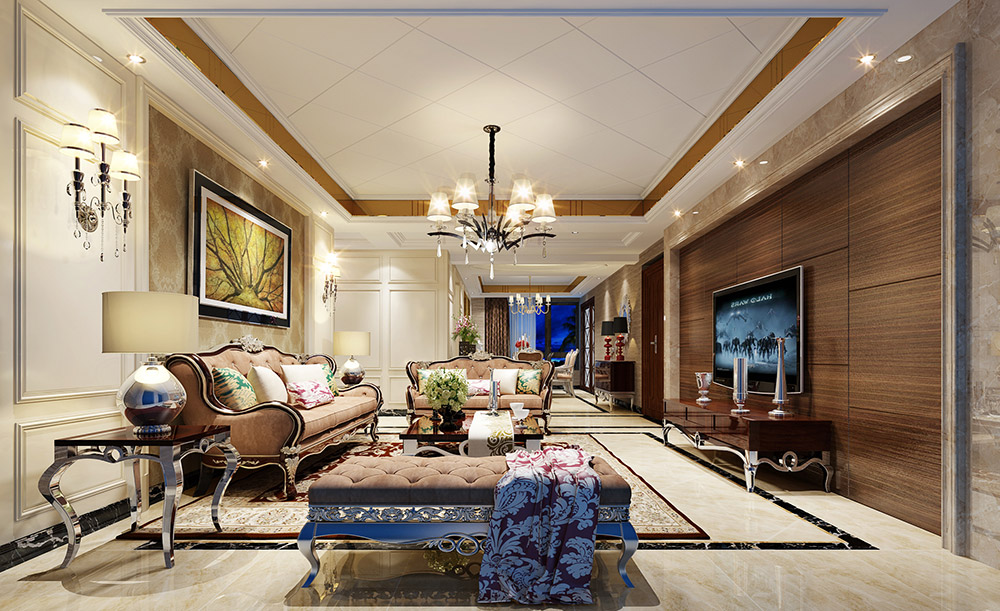 欧式风格室内装修效果图-龙光玖珑湖三居136平米